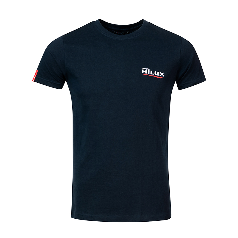 The Men’s Hilux Navy T-shirt blends comfort and style with its 100% super carded cotton fabric. Featuring a double neck rib with top stitching and a front Hilux rubber logo, it combines durability and a modern look. The navy colour and ribbed crew neck make it a versatile choice for casual or everyday wear.