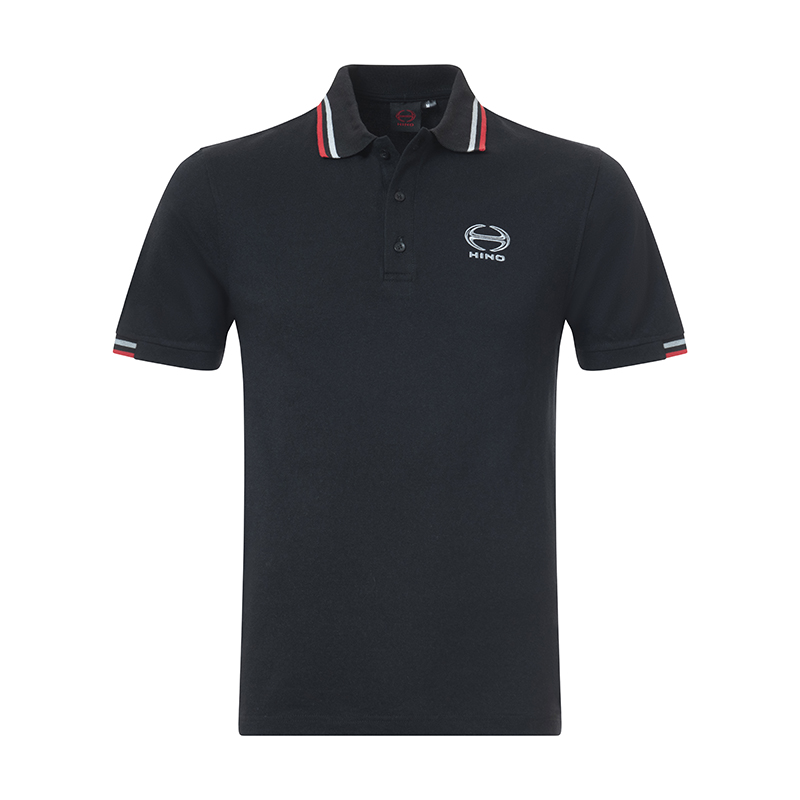 HINO BLACK MENS GOLF SHIIRT WITH RED STRIP