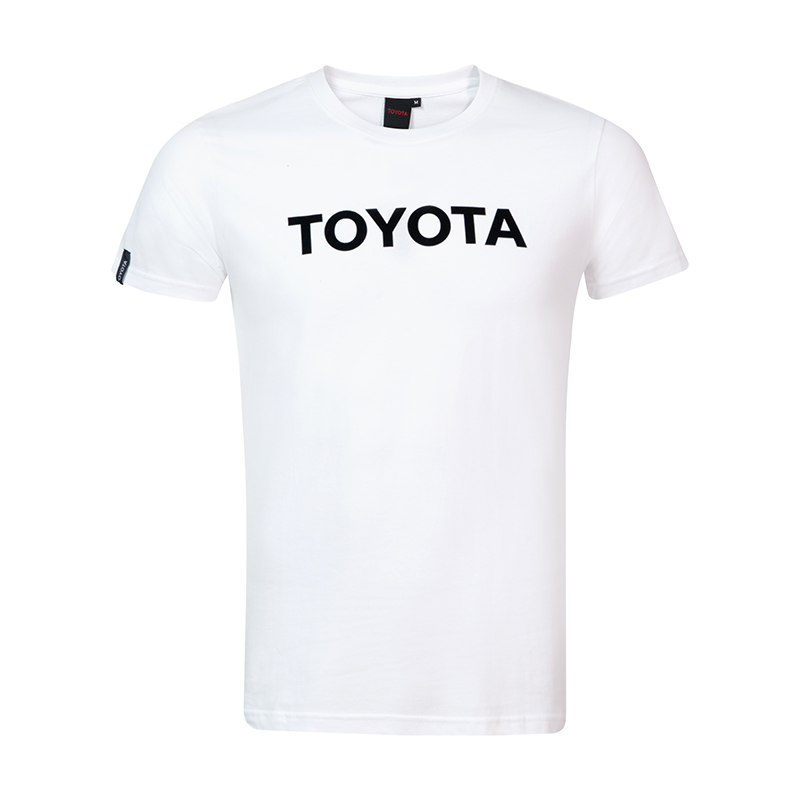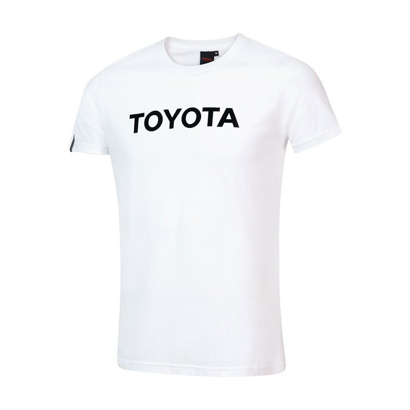 180 g/m² 100% cotton single jersey knit Short sleeve Ribbed crew neck Front flocking print Toyota Side winder