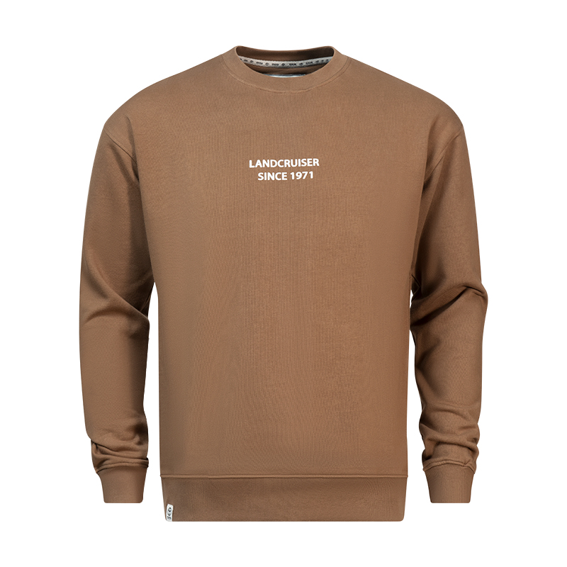 Inspired by rugged terrain and built for everyday adventure, the Land Cruiser Heavyweight Crew Sweat delivers heritage durability in a premium 100% cotton construction. Available in military olive and tobacco brown, this crew features a bold high-definition 3D chest print reading LAND CRUISER SINCE 1971, paying homage to a legacy of endurance. Structured rib trims and a heavyweight hand-feel complete the look for cooler conditions and effortless layering.