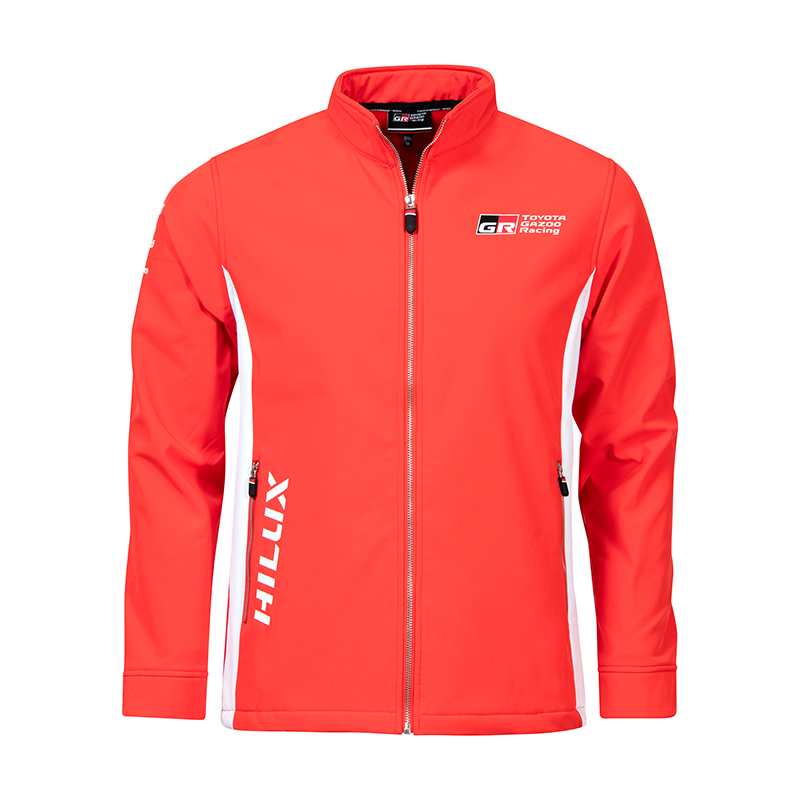 The TOYOTA GAZOO Racing Rally Raid Team Softshell Jacket provides unmatched comfort and sophisticated style. Its features include a robust full metal zip, two interior slip pockets and a dynamic GR print on the back, high-quality fleece lining and elastic cuffs. The jacket also showcases distinct branded neck tape, zip pulls, and prominent team and sponsor logos, enhanced by white panel detailing. It is an essential attire for racing aficionados and style-conscious individuals, highlighting its importance as a significant style statement.